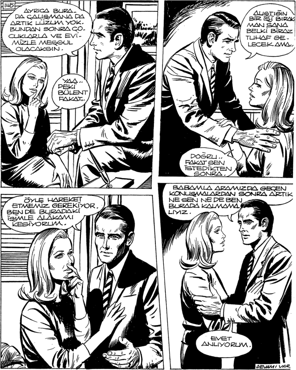 Bülent: Ayrıca burada çalışmana da artık lüzum yok. Bundan sonra çocuklarla ve evimizle meşgul olacaksın. |